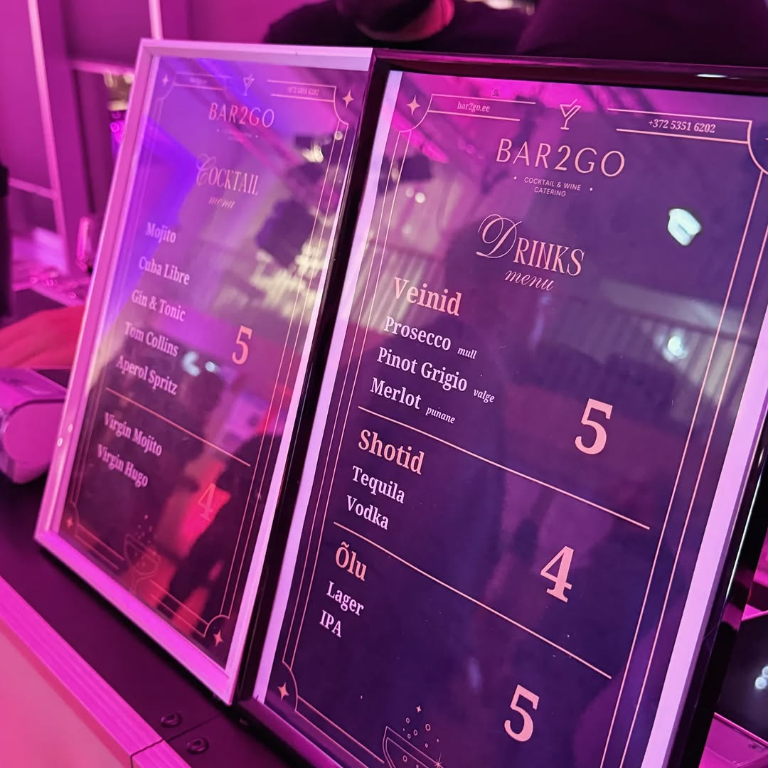 Meie pop-up baar tuleb kohale koos kõigega – jookide, klaaside, vajaliku varustuse ja atmosfääriga. Teie ülesanne on olla kohal ja nautida. Meie ülesanne on muuta see õhtu tõeliselt meeldejäävaks.